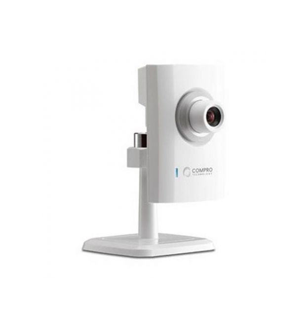 Compro CS80 2MP HD cloud network camera ( iP camera ) , adjustable lens , with smart phone APP support , HD video , audio detection via dBA , 10/100 or 802.11n wireless via optional module , 1/3" Cmos 2mp sensor , 10x digital zoom , motion detection triggers recording and sends e-mail alerts , video : 1600x1200@15fps / 1280x720@30fps , 1-way audio with built-in mic , 60? viewing angle , 3.75mm focal length , apeture ratio F3.0 , H.264+ MJPEG+ MPEG-4 tripple codec , white - wall/ceiling mount ready