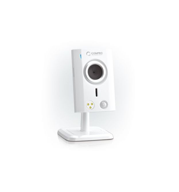Compro TN60W white cloud network camera ( iP camera ) , day and night under all light condition via built-in 3x iR LED , with C4Home Cloud App Service for tablet/ smart phone/ web browser , audio detection via dBA , micro SDHC card slot to store recording locally when internet is down , 10/100 lan + 802.11n wireless , 1/7" Cmos sensor , 10x digital zoom , motion detection triggers recording and sends e-mail alerts , video : 640x480@30fps , 2-way audio with built-in mic+speaker , 55? wide viewing angle , 2mm focal length , apeture ratio F2.8 , H.264+ MJPEG dual codec , white - wall/ceiling mount ready