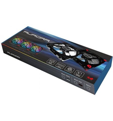 Inwin Auroa RGB x3 + Controller blacK+Red - with dedicated iC chip/controller for each RGB led , wireless remote control ( 8x light speed level / 22x lighting mode / 7x speed level / 6x brightness level ) , modular connector for daisychain ; 120x120x25mm , 7x black blades PWM fans , shockproof rubber corners for noise reduction , 800-1400rpm + 2000RPM turbo mode , 23.7dBA , 40.26-57.6 CFM , 1.5 - 2.77 mm/H2o static pressure