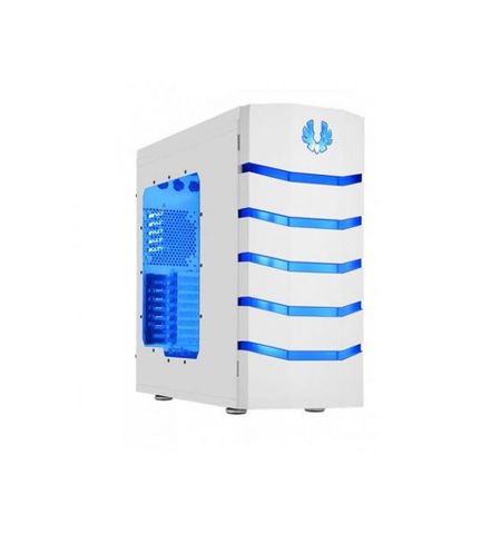 Bitfenix CLS-500-WWWB1 Colossus with Windowed side panel - White with bLue led - all white , with front door open to left or right , top S3 security with lock ( for storage compartment + i/o port + peripherals cable ) , SofTouch surface treatment , no psu ( bottom placed + multi-direction psu design ) , tool-free pci slots design ; 2x usb 3.0 + 2x usb2.0 + eSATA + audio in/out - 4/5x 5.25" , 1/0x 3.5" , 7x 3.5"/2.5" internal , all 3.5"+5.25" bay tool-free - 2 x 230mm LED fan upto 7 with on/off switch - E-ATX