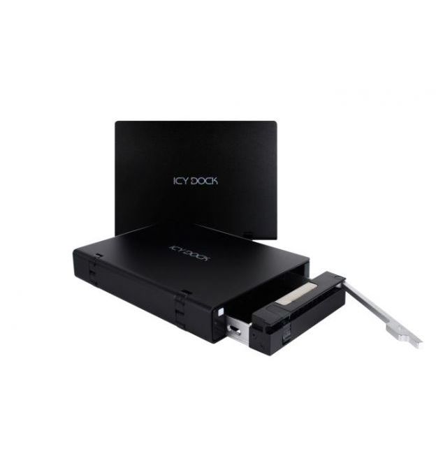 iCYDOCK MB559UEA-1SB , blK , multi-drive exchangeability with hot-swapable removable inner tray , ultra-thin ( 194x142.6x42.6mm ) + anti-shank design , SATA3G to Usb 2.0+Firewire ieee1394A ( 400mb/sec ) , 3.5" external enclosure , aluminum , built-in stand , latch-lock , with security slot for cable lock ; Interchangeable tray compatible with external enclosure : MB561S-4S , MB559US , MB559UEA / mobile rack : MB876SK, MB453SPF, MB454SPF, MB455SPF, MB153, MB154 ; support icydock Hybrid external adapter ( e-SATA + ac power connector on pci bracket )