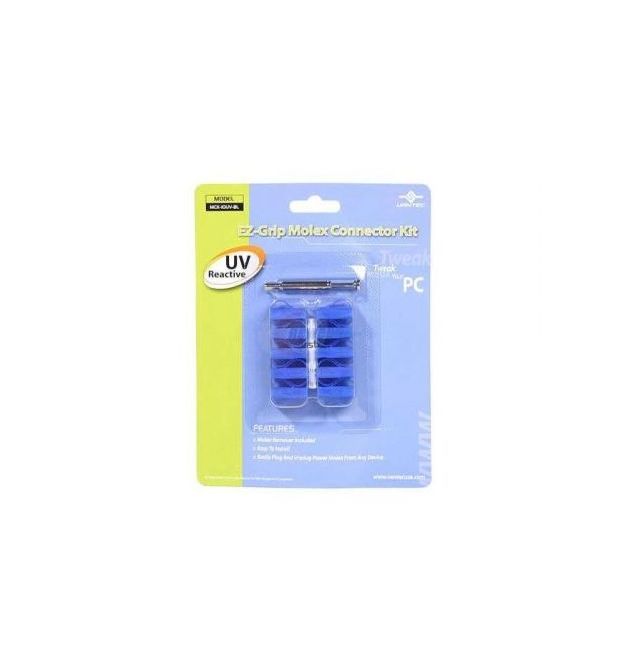 Vantec MCK-iOUV-BL , EZ-Grip Molex Connector Kit - UV reactive bLue ; 10 molex connector with one molex remover