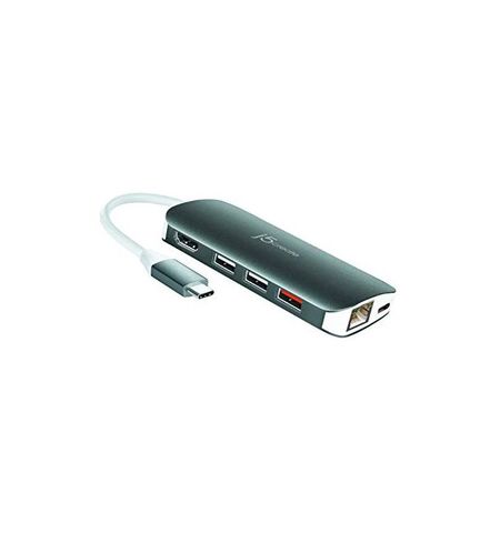 j5 Create JCD383 minidocking - USB3.0 Type-C ( Gen1/5GBPs ) universal docking station with HDMi + gigabit Lan + USB3.0 type-C + 2x USB3.0 type-A + 1x USB3.0 BC1.2 2.4A type-A for fast charge + dual card readers ( SDXC + miCroSDXC ) - 4K HDMi ( upto 3840x2160 ) ; for windows or MAC , 50x105x16.5mm + 137mm cable , aluminum housing