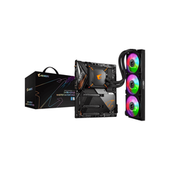 Gigabyte Z490 Aorus Master Waterforce + Wifi : all-in-one LGA1200 (coMet lake) mb - with CPU+VRM liquid cooler 360 ( 394x119x27mm radiator with 3x120mm ARGB fans ) + thermal baseplate , 14+1 phase digital VRM , pre-mounted I/O shield with thermal armor + RGB Fusion 2.0 with on-board RGB display (...