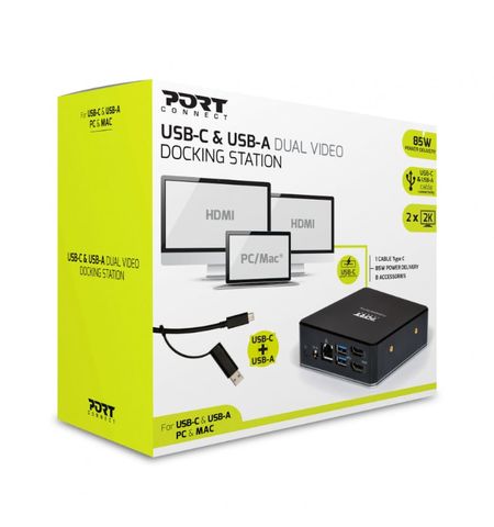 The new PORT USB-C & USB-A docking station with dual video output increases laptop connectivity and provides up to 85W of power via a power replicator.