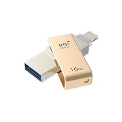 Pqi 6i04-016GR2001 iConnect Mini 16Gb Gold - USB3.0 + Apple certified MFi lightning dual-connectors flash drive for iOS/MAC/PC ; 45x13x8mm , CoB3.0 , capless swivel design , with 1-touch backup + fingerprint security via iOS , with mobile strap + strape hole , with backup software - 2 years warranty