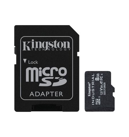 Kingston SDCiT2/8GB 8Gb miCro SDHC ( 15x11x1mm ) with SD adapter - IndusTrial grade for extreme condition ( operating temperature rating of -40øC to 85øC ) - UHS-i U3 ( UHS-i / SD3.0 ) , with SDMI , read/write : 100/80mb/sec - 3 years warranty with 240 TBW , retail pack