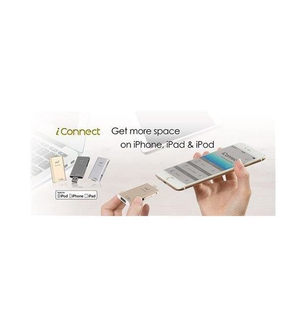 Is your iPhone, iPad & iPod low on space?ÿ Free up space on your iPhone, iPad & iPod easily with PQI iConnect.ÿ PQI iConnect is equipped with an Apple certified Lightning interface that can be plugged into aniPhone, iPad & iPod directly. It helps you to quickly back up photos and videos and stores your precious memories, leaving your iPhone, iPad & iPod with enough space to capture exciting moments at all times! What's more, you can store your favorite movies, music, and files in iConnect and play them directly on an iPhone, iPad & iPod simply by plugging in iConnect.ÿ Media and files saved on iConnect won?t occupy any of your iPhone, iPad & iPod?s storage space, thereby satisfying your entertainment and work requirements at all times. iConnect is also equipped with a USB 3.0 interface for fast data transfer. Whether transferring data from your computer to your iPhone, iPad & iPod, or backing up iPhone, iPad & iPod data onto your computer, you can now effortlessly piece together every moment of your life with iConnect!