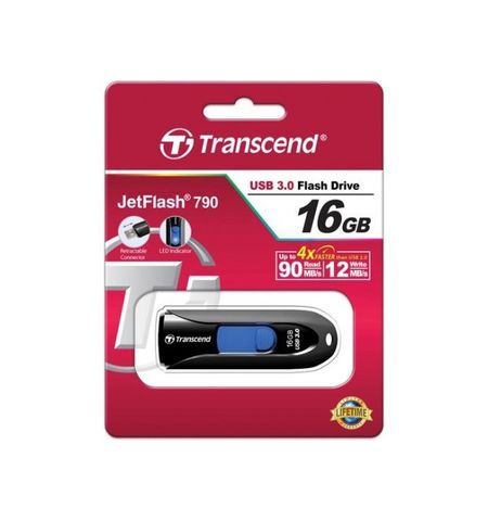 Save all of your important files to this retractable black 16GB JetFlash 790 USB 3.0 Flash Drive from Transcend. With a USB 3.0 interface you can place this capless flash drive into nearly any Windows, Mac, or Linux based USB compatible device. The capless enclosure features a slide out USB connector. You can even take your files with you on the go by attaching a lanyard or key ring to the attachment loop.