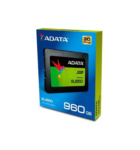 Adata ultimate SU650 960Gb 2.5" SATA6G SSD , 3D-TLC - 12Gb SLC+ 1Gb DDR3 caching , with AES-256 security + Agile ECC + VPR (Virtual Parity Recovery) technology , compressible data (ATTo) read/write : 520/320mb/sec , incompressible data (AS-SSD) read/write : 520/450mb/sec , Random Read/Write 4K : 40000/75000 ioPS , with BGC (Background Garbage Collection) - 2 millions MTBF with with 560TBW - 3 years warranty