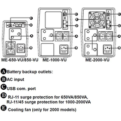 - Microprocessor control guarantees high reliability - Boost and buck AVR for voltage stabilization - Auto restart while AC is recovering - Simulated sine wave - Off-mode charging - Cold start function - USB communication port and RJ-11/RJ-45 protection - Overload, discharge, and overcharge protection