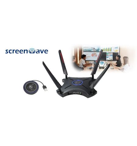 J5create JWR2100 wireless AC1750 Dual Band Gigabit Router with FHD video outputs ( HDMi + VGA ) - for multi-person conference applications up to 9 simultaneous users/displays , 2.4/5Ghz dual band , ( 802.11b/g/N/ AC ) 1750Mbps (1300+450) wireless router with 4 port gigabit switch + 1x usb2.0, 4x 5dBi external antennas