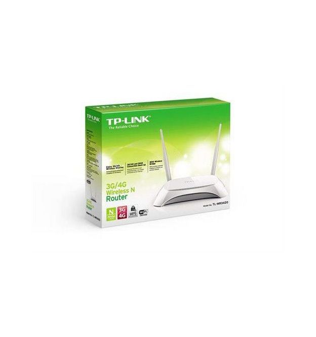 TP-LINK 300Mbps 3G/4G Wireless N Router (TL-MR3420) - Frequency: 2.4GHz, Wireless Standards: 802.11b/g/n, Antenna Type: Detachable Omni Directional Antenna, Interface: 1 x USB 2.0 Port for LTE/HSPA+/HSUPA/HSDPA/UMTS/EVDO USB Modem, 1 x 10/100Mbps WAN Port, 4 x 10/100Mbps LAN Ports, Power Supply: 12VDC/1A, 1-Year Carry-in Warranty