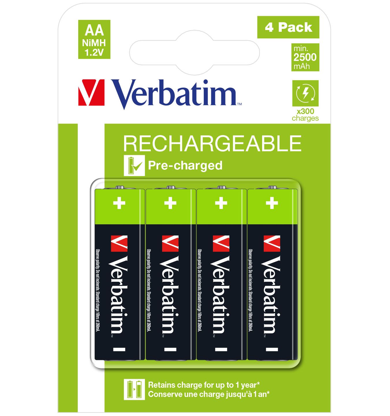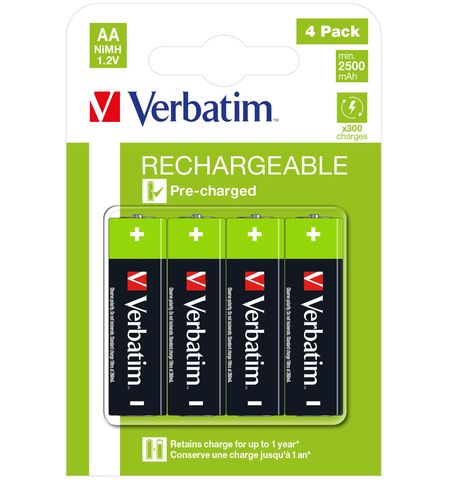 VERBATIM AA RECHARGEABLE BATTERIES (2500 SERIES) 4 PACK